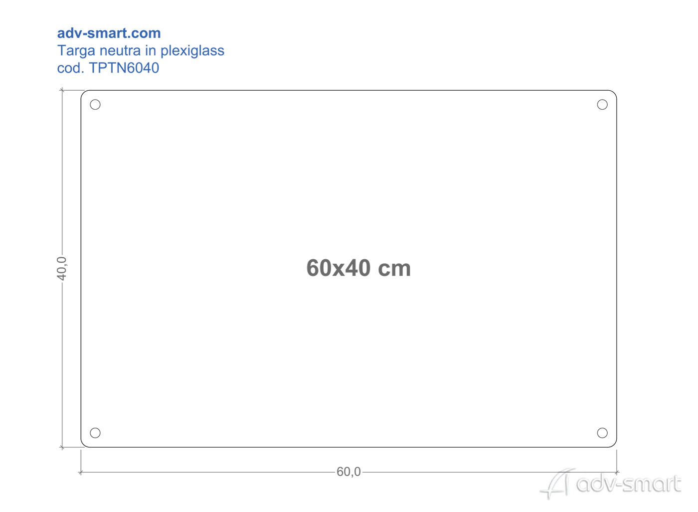 Targa Neutra in Plexiglass trasparente 60×40 cm, spessori da 5 e 8mm.