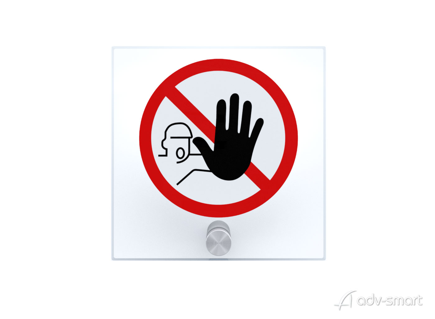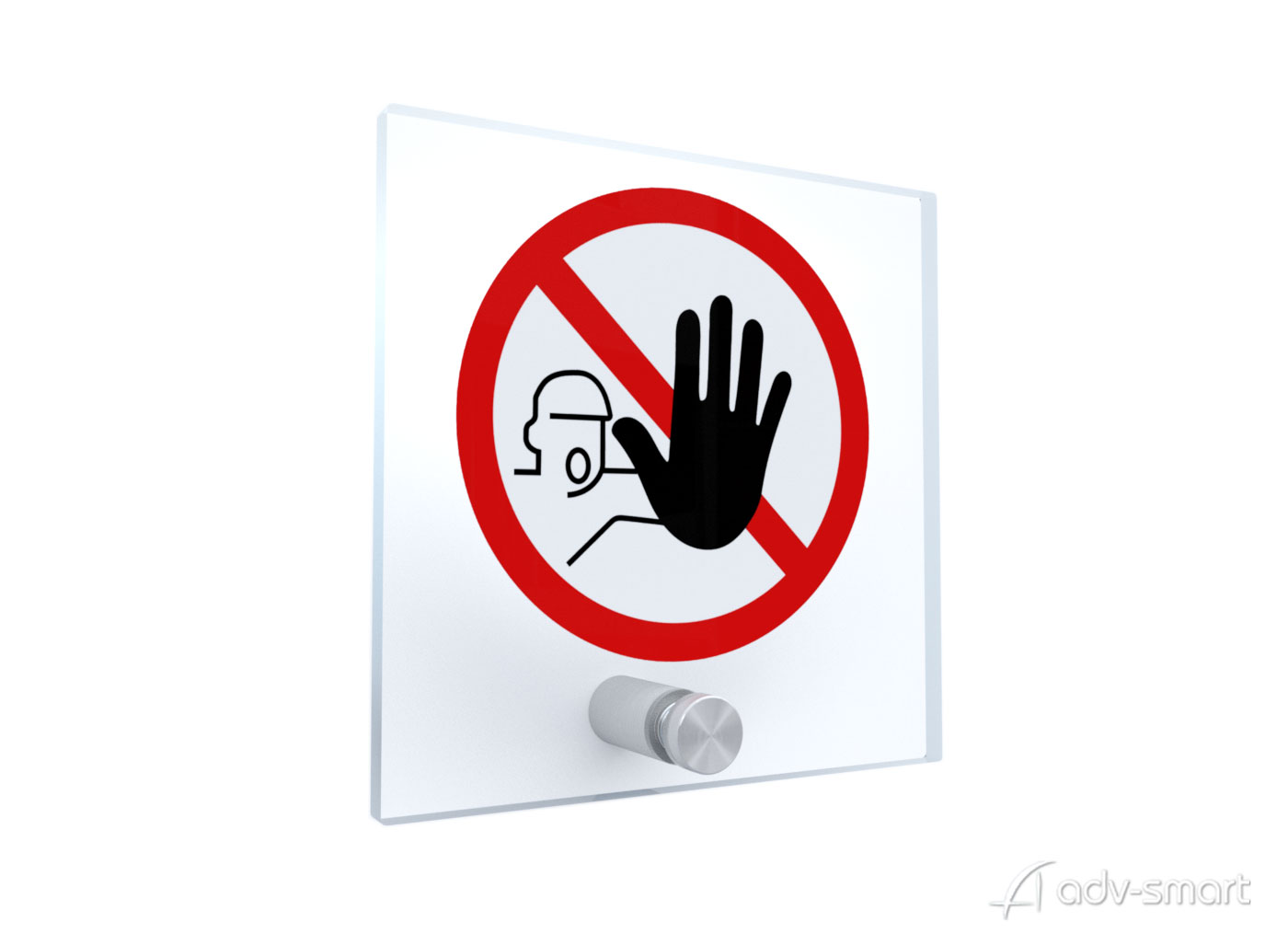 Targhetta Vietato Entrare in Plexiglass realizzata con materiali di alta qualità, plexiglas di dimensioni 10×10 cm con spessore 5mm, del tipo colato con bordi lucidi, grafica stampata e fissaggio con distanziatore in acciaio inox.