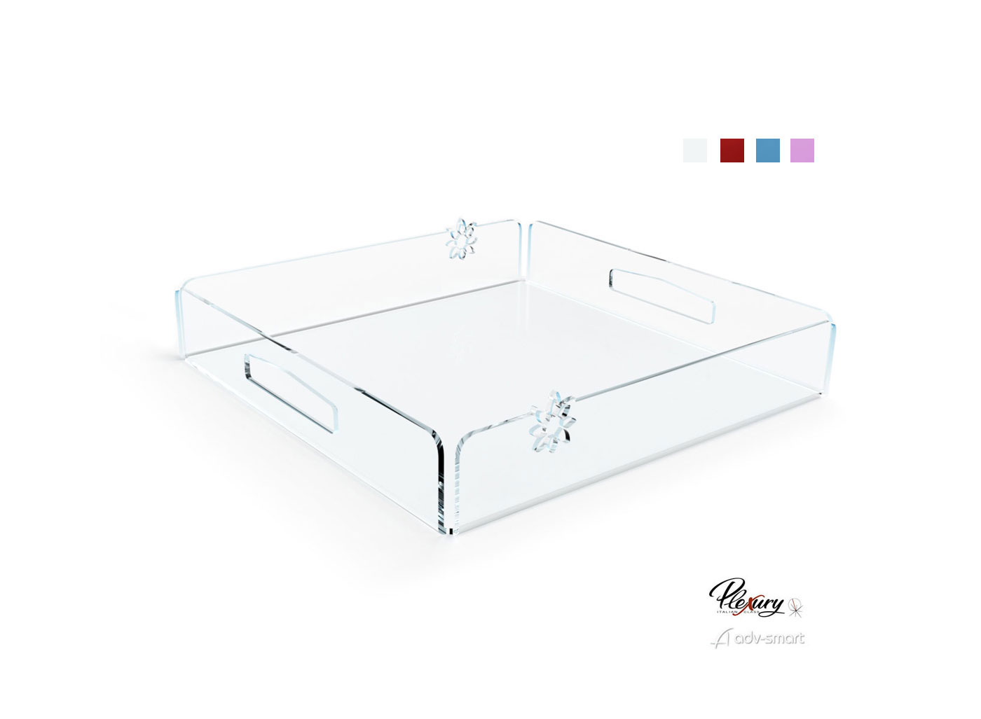 Vassoio in plexiglass quadrato 27×27 cm Plexury Flowers colori: trasparente, rosso, azzurro, lilla