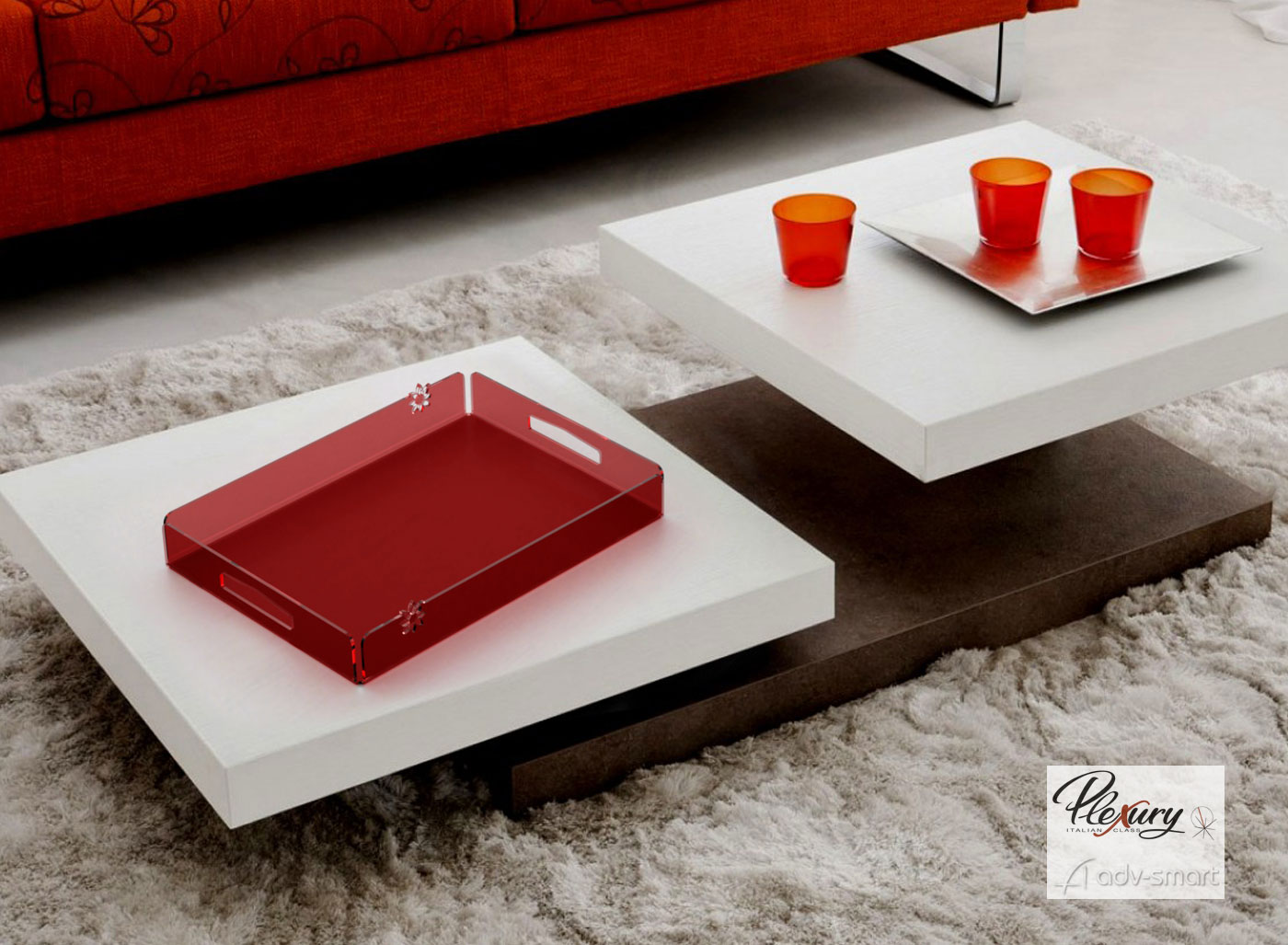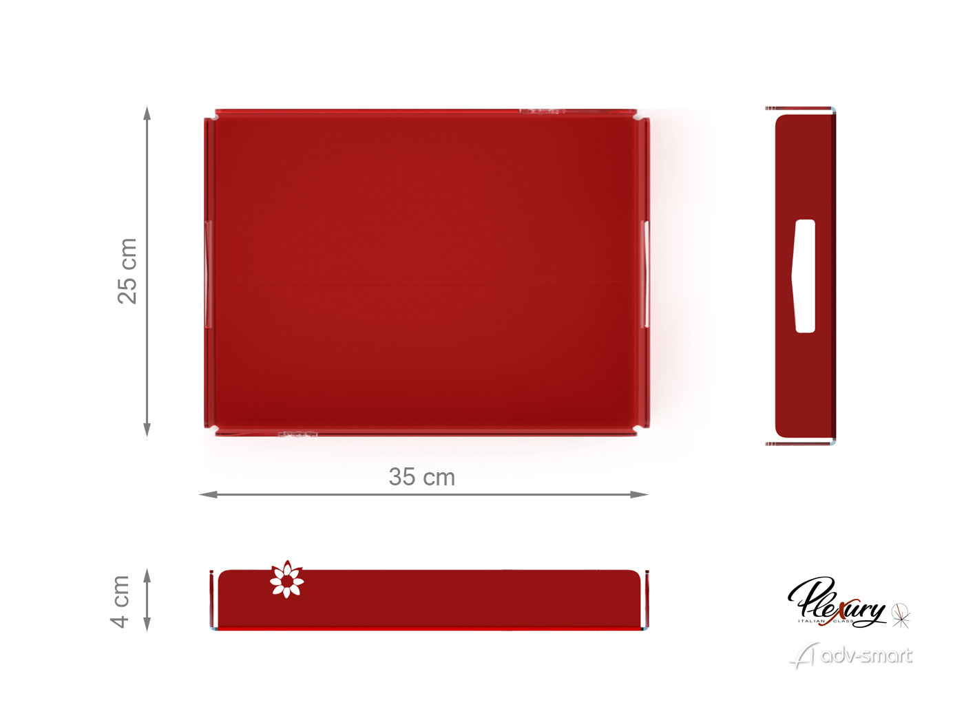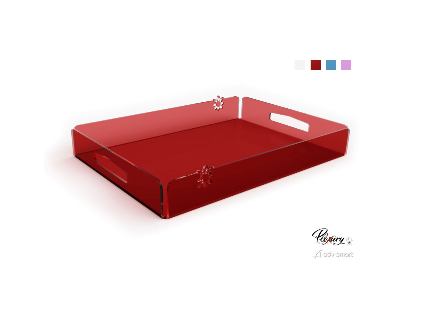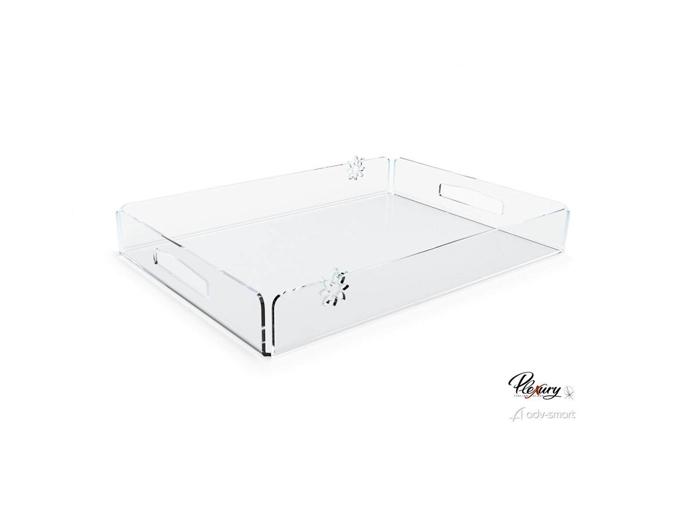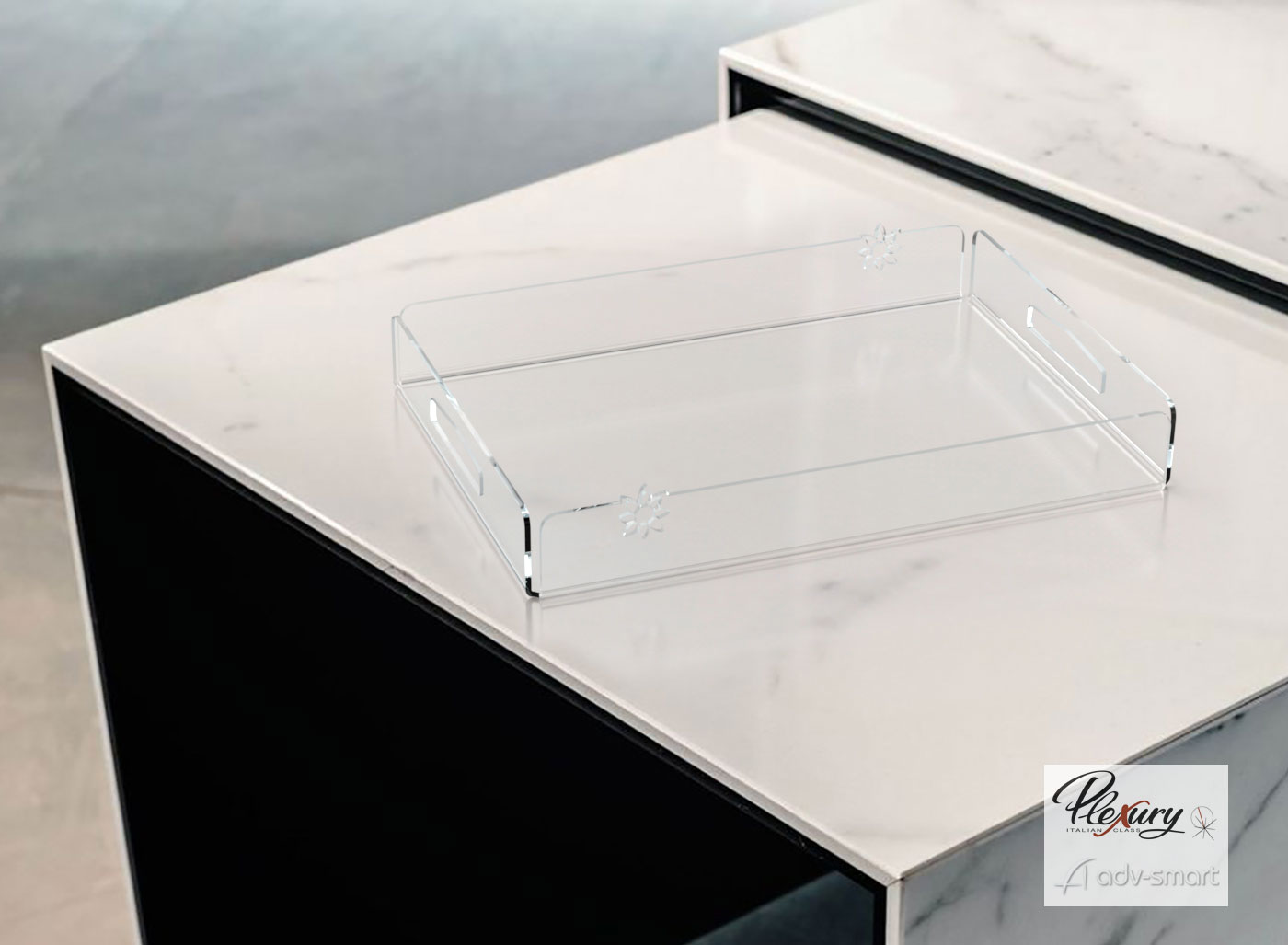 Vassoio in Plexiglas linea Flowers di forma rettangolare 35×25 cm realizzato da Plexury.